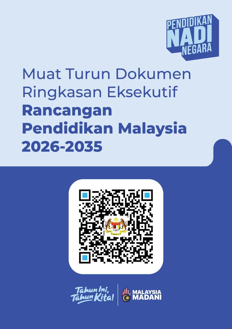 Muat Turun melalui link 🔗: https://bit.ly/DokumenRingkasanEksekutifRancanganPendidikanMalaysia2026-2035 atau imbas melalui QR Code