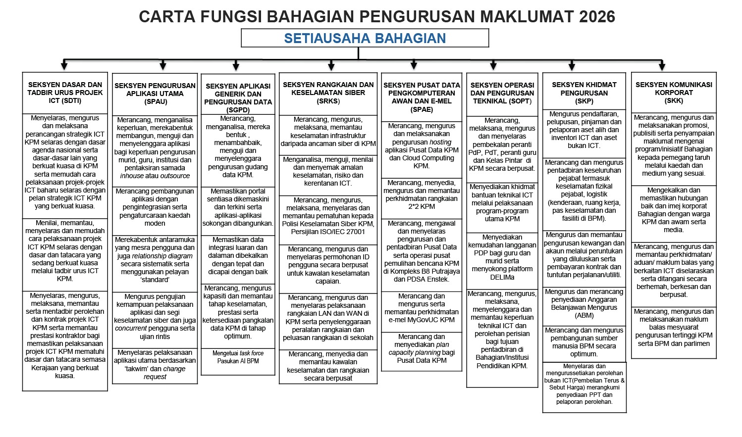 Kami warga Bahagian Pengurusan Maklumat, Kementerian Pendidikan dengan penuh tekad dan iltizam berikrar dan berjanji akan menumpukan seluruh tenaga dan usaha kami untuk: