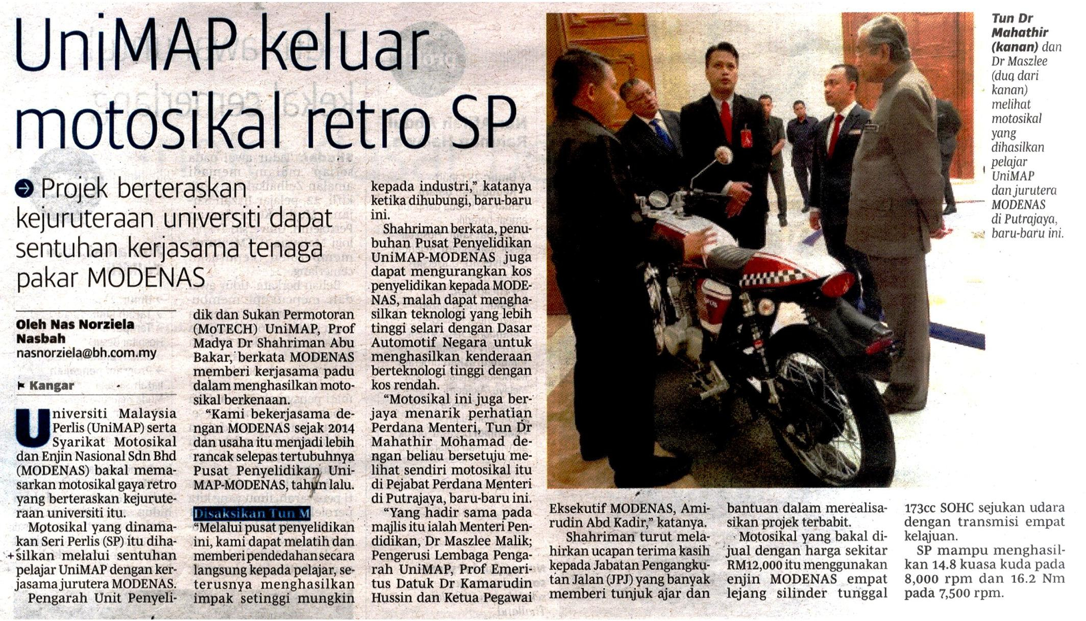 UniMAP keluar motosikal retro SP - Berita Harian, 10 Januari 2019