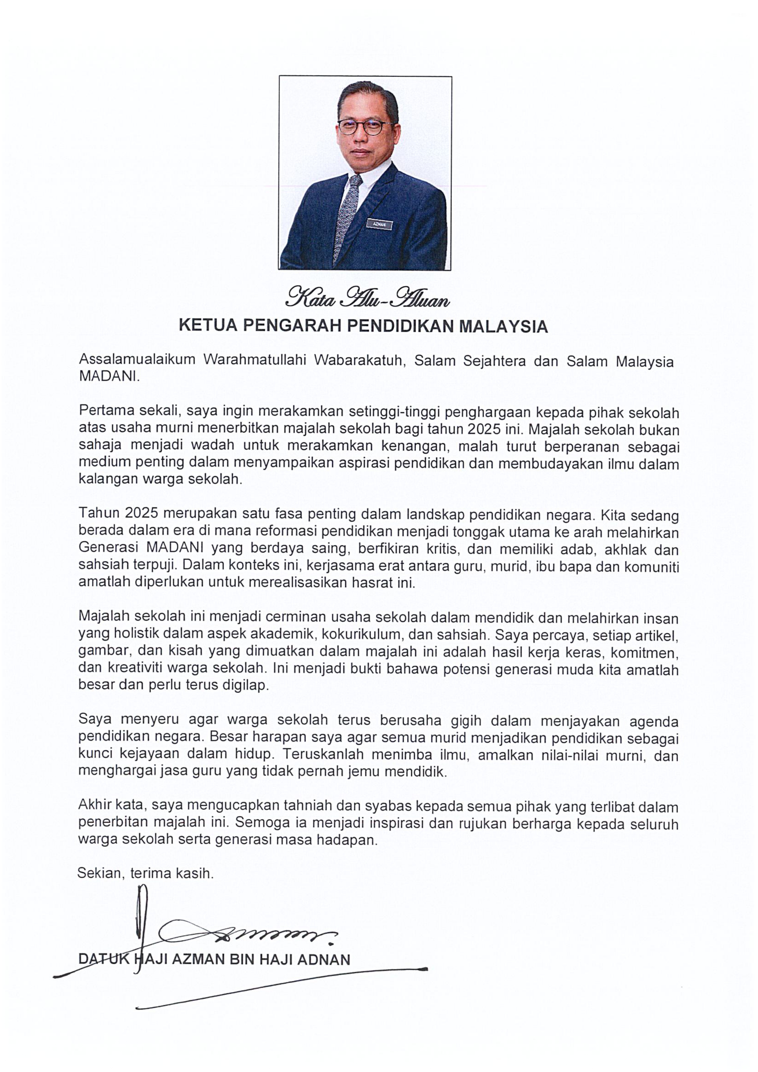 Kata Alu-Aluan Ketua Pengarah Pendidikan Malaysia 2025