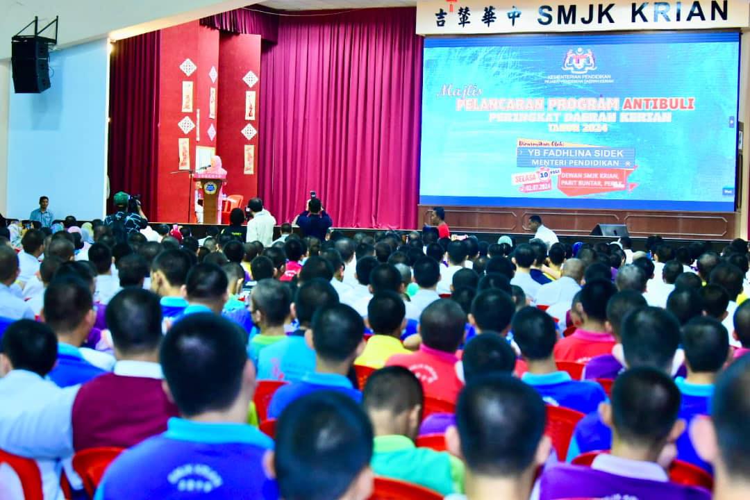Menteri Pendidikan, YB Fadhlina Sidek telah menyempurnakan Majlis Pelancaran Program Anti Buli Peringkat Daerah Kerian Tahun 2024 di SMJK Krian, Parit Buntar, Perak.